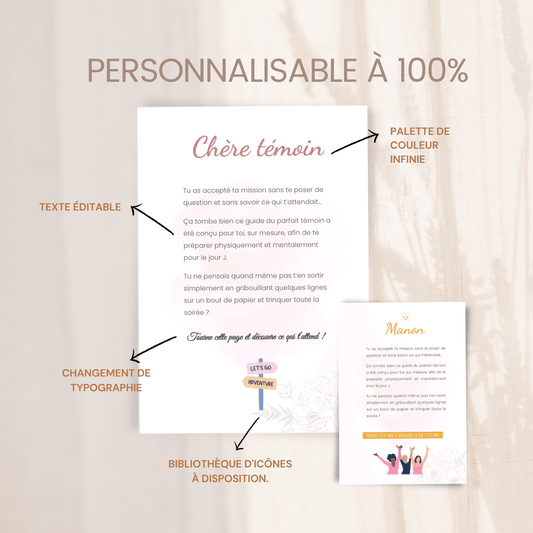 J’ai pris le guide du témoin que j’ai personnalisé pour faire la demande de témoins à mes 2 sœurs elles étaient ravies, un indispensable quand on ne sait pas trop à quoi s’attendre en étant témoin.